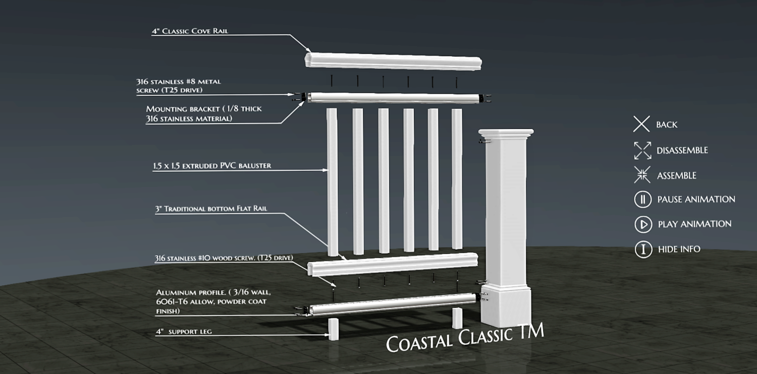 Step 2.Using the calculator (coastalclassicrailings.com/calculator) lay out the aluminum insert for the top rail only. Mark the edge of each baluster at the bottom of the insert.