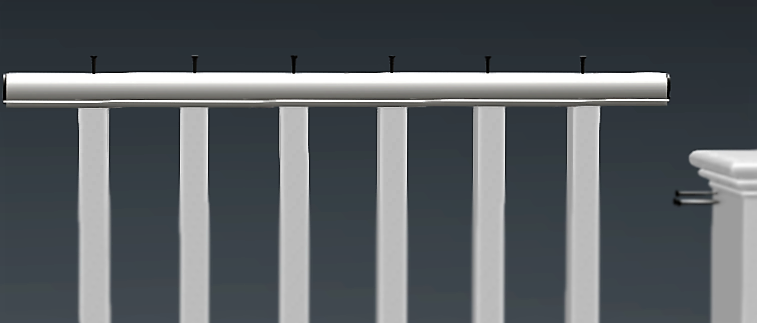 Step 8.Attach the bottom PVC cap rail to the balusters (28" for 36" rail sections) with # 10 2½" star drive screws.